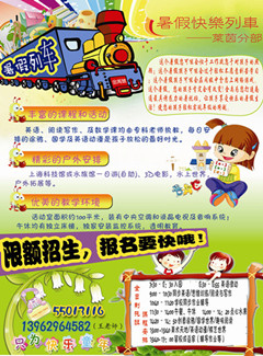 一年一度的快乐暑假即将来临了,这个暑假,您可能会忙于工作疏忽于对孩子的照顾;这个暑假,孩子可能会过于轻松不愿意刻苦学习;这个暑假,孩子可能会在闲暇中贪恋上网络游戏。这个暑假,您的孩子肯定会有改变! 金禹快乐列车带上您的孩子出发啦!全托班为您送上丰富的课程内容,让孩子享受快乐的暑假生活!使您的孩子轻松实现年级的跨越。