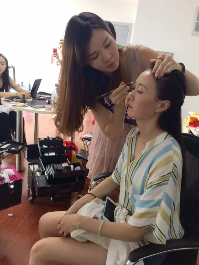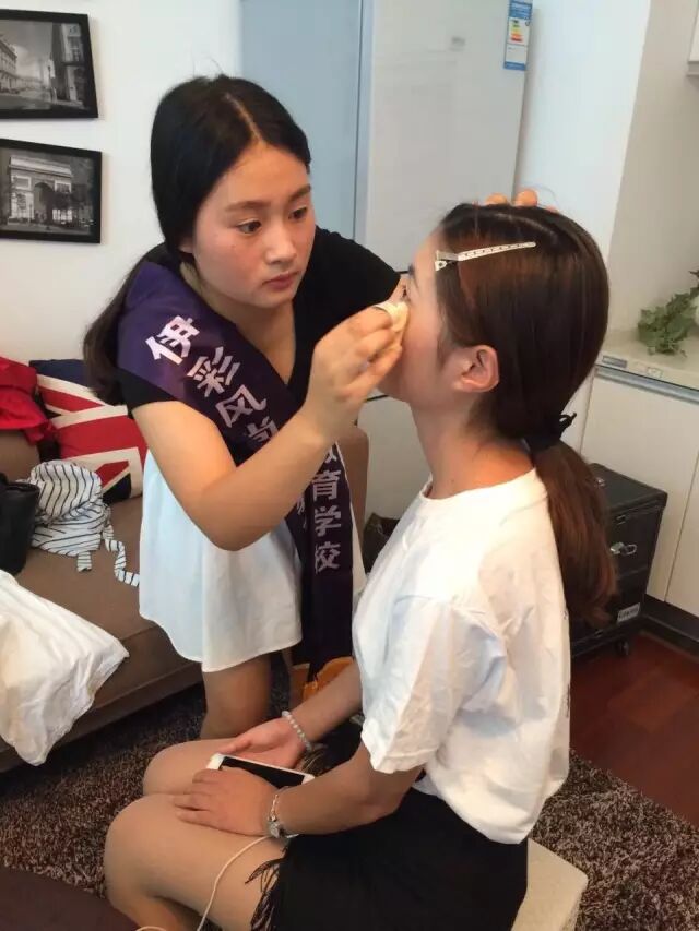 同学们为佳丽化妆造型!