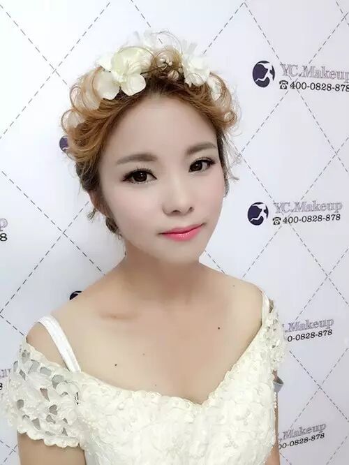 棕色的发色很是迷人,也很符合秋季的浪漫特点,搭配上白色的花朵点缀,让新娘显得仙气十足,同时也增加了妩媚的感觉,低头一笑无限温婉。